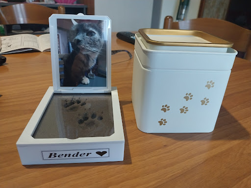 Oltre le ceneri si è premurata di consegnarmi un calco della zampina ,una foto e un piccolo ciuffo del manto.